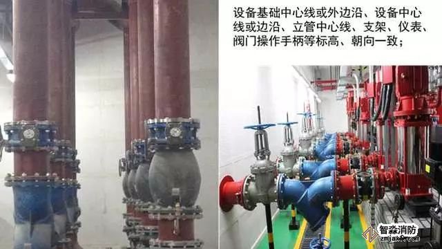 質(zhì)量控制要點(diǎn):成排成線(xiàn),部件標(biāo)高、朝向一致,維護(hù)方便,各專(zhuān)業(yè)必須依照綜合管線(xiàn)布置圖施工(距離管線(xiàn)彎頭500mm范圍內(nèi)應(yīng)設(shè)置支吊架)。