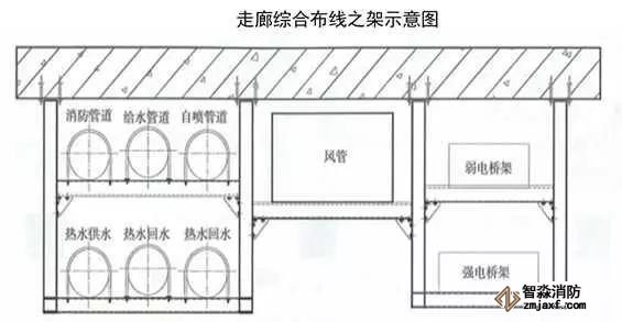 5、橋架和水管多層水平布置時(shí),橋架應(yīng)位于水管上方;高中壓在上,低壓在下,經(jīng)常檢修的在下;與吊頂表面末端設(shè)施連接的管線(xiàn)宜貼近吊頂,減少交叉;