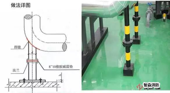 根據(jù)管道公稱(chēng)直徑大小,選擇不同厚度的鋼板,加工成肋板,校正管道的垂直度,先將肋板底端焊接固定到管道周?chē)闹Ъ苌希賹⒗甙鍌?cè)面與管道焊接,檢查焊縫,再次校正管道垂直度,無(wú)誤后,刷防銹漆、面漆,設(shè)計(jì)要求保溫的進(jìn)行管道保溫。