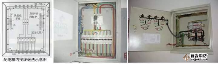 4、箱(柜)內(nèi)接線(xiàn):先將線(xiàn)(纜)理順,按照100~200mm的間距用尼龍?jiān)鷰нM(jìn)行綁扎,拐角兩側(cè)30~50mm及分支處應(yīng)設(shè)扎帶,按照黃色(L1)、綠色(L2)、紅色(L3)、淡藍(lán)色(N)、黃綠相間色(PE)分別接入A相、B相、C相、N線(xiàn)、PE線(xiàn)端子上,多股線(xiàn)應(yīng)壓接線(xiàn)端子;標(biāo)識(shí):應(yīng)在N、PE端子排附近刻寫(xiě)或粘貼“N"、“PE”標(biāo)識(shí),進(jìn)入配電盤(pán)的外部回路應(yīng)扎回路牌,進(jìn)入配電盤(pán)的控制線(xiàn)在導(dǎo)線(xiàn)套上號(hào)碼管;接地:配電箱(柜)的接地螺栓、箱門(mén)上的接地螺栓、電源進(jìn)線(xiàn)回路的PE線(xiàn)、配電箱饋出各個(gè)回路的PE線(xiàn)、與配電箱連接金屬導(dǎo)管均應(yīng)PE端子直接連接,導(dǎo)通良好。