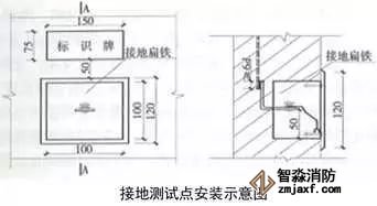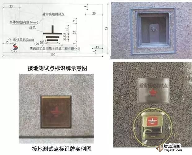 1、避雷接地測(cè)試點(diǎn):預(yù)埋扁鐵鋼及100x100x50線(xiàn)盒,線(xiàn)盒與墻面平齊,鍍鋅扁鋼鉆φ12孔,安裝防松墊片及蝴蝶螺母,螺母居預(yù)埋盒中心。編織軟銅線(xiàn)一端連接在蝴蝶螺母上,另一端壓接銅鼻子用于接地測(cè)試。銅質(zhì)面板用螺絲固定在預(yù)埋盒上,在測(cè)試點(diǎn)正上方50mm處粘貼銅質(zhì)或不銹鋼標(biāo)識(shí)牌,標(biāo)識(shí)牌應(yīng)標(biāo)明接地測(cè)試地點(diǎn)、接地符號(hào)、施工單位、編號(hào),標(biāo)高尺寸及位置與相鄰沉降觀測(cè)點(diǎn)及標(biāo)識(shí)牌一致。
