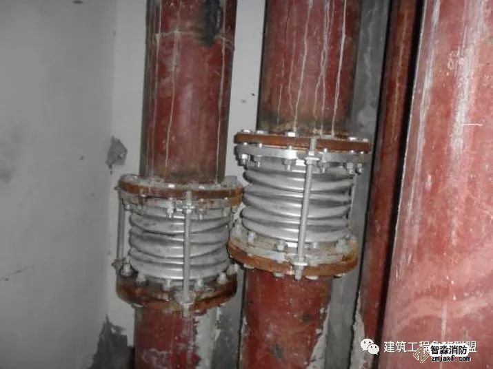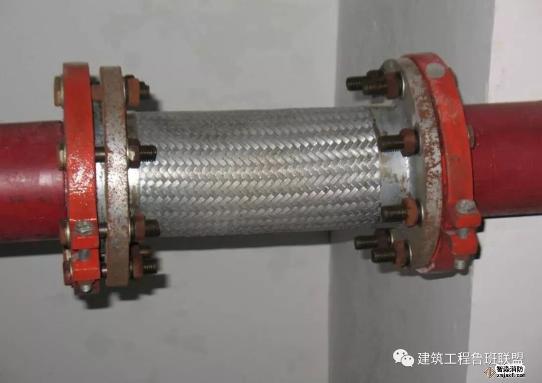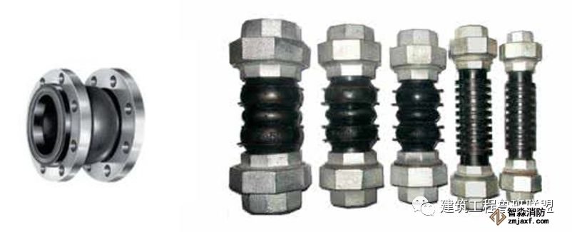 2. 水泵、冷水機組、風機盤管、空調機組等機電設備與水管之間用軟管連接,不使振動傳遞給管路。軟管有兩類:橡膠軟接管和不銹鋼波紋管。橡膠軟接管隔振減噪的效果很好,缺點是不能耐高溫和高壓,耐腐蝕性也差。在空調與采暖的水系統(tǒng)中多用橡膠接管。不銹鋼波紋管能耐高溫、高壓和耐腐蝕,但價格較貴,一般用于制冷劑管路的隔振。