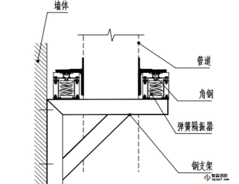 3. 在管路的支吊架、穿墻處使用非燃軟性材料填充做減振處理。