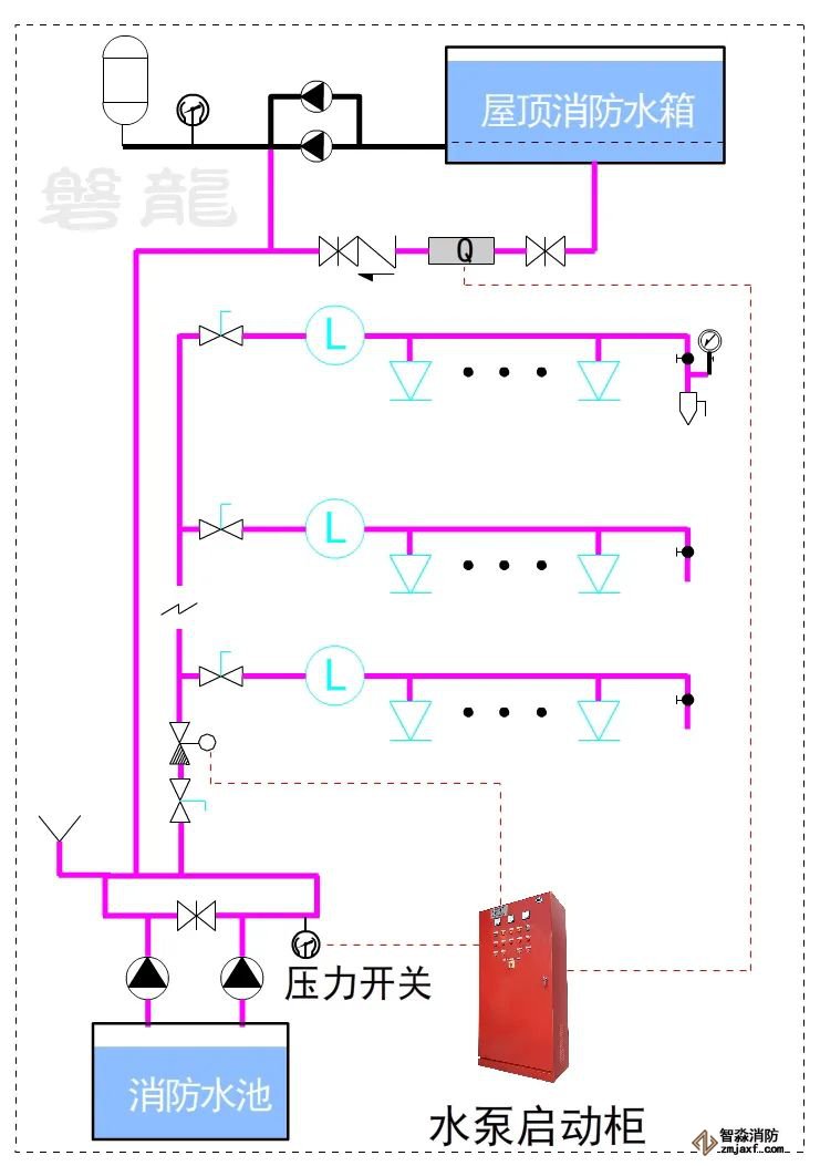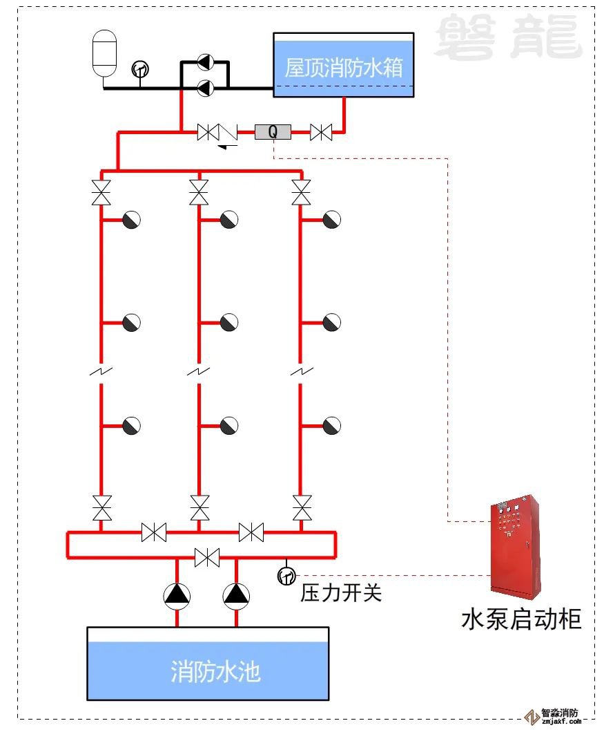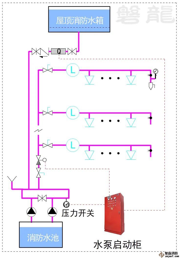 對于這類系統(tǒng),消防水泵出水干管上應設置壓力開關,高位消防水箱出水管上必須設置流量開關,存在問題及解決措施: