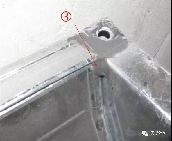 ③ 共板法蘭風(fēng)管四角制作豁口應(yīng)該打膠嚴密,打膠應(yīng)該抹平整,不出現(xiàn)堆疊現(xiàn)象。