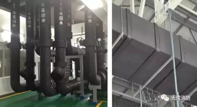 風(fēng)管穿越防火墻應(yīng)設(shè)有鋼板厚度1.6mm及以上的套管。套管內(nèi)部應(yīng)用玻璃棉等不燃材料封堵,外面用防火泥抹面。