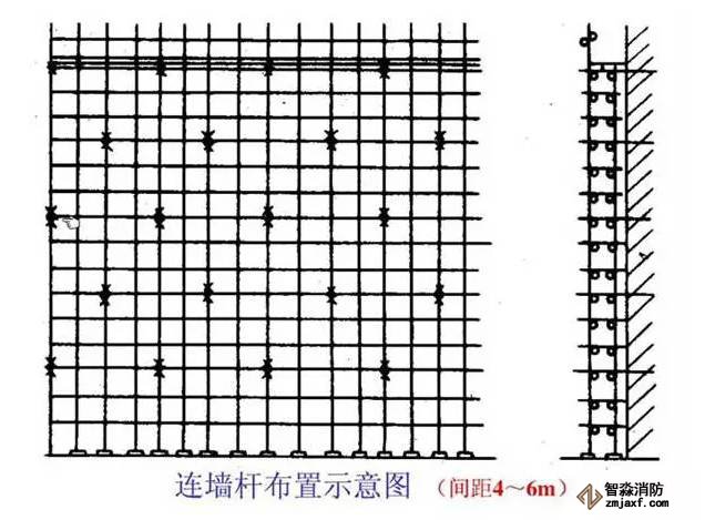 ⒉橫桿:縱橫向水平拉桿步距≯1.8m,操作層大橫桿間距≯40cm。