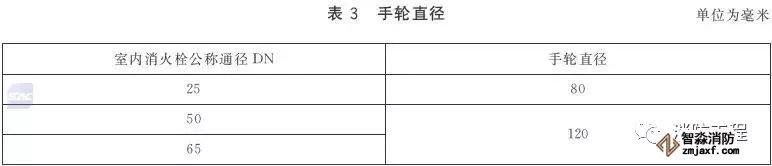室內(nèi)消火栓的進(jìn)水口應(yīng)為圓柱管螺紋,其進(jìn)水口的螺紋尺寸應(yīng)符合表3的規(guī)定;閥桿與閥桿螺母應(yīng)為梯形螺紋。