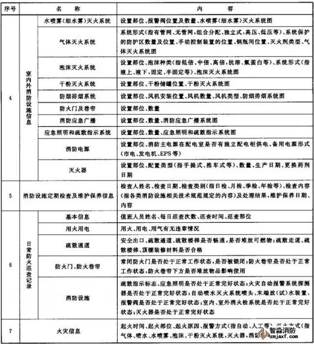 (1)應(yīng)能顯示規(guī)定的資料內(nèi)容及消防安全管理信息表中規(guī)定的其他相關(guān)信息;