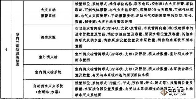 (6)消防設(shè)施一覽表,包括消防設(shè)施的類型、數(shù)量、狀態(tài)等內(nèi)容;