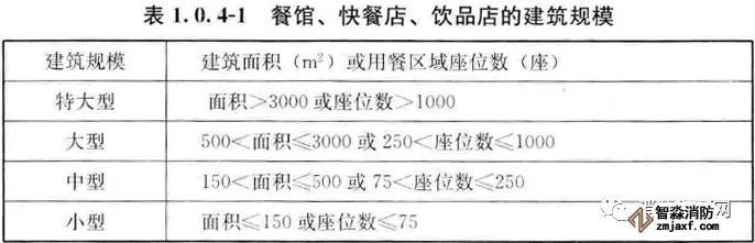 3、飲食建筑按建筑規(guī)模可分為特大型、大型、中型和小型,并應(yīng)符合表1.0.4-1及表1.0.4-2的規(guī)定。