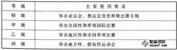 四、體育建筑等級(jí)應(yīng)根據(jù)其使用要求分級(jí),且應(yīng)符合表1.0.7規(guī)定。(1.0.7)