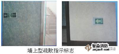 墻上型疏散指示標志,箭頭應該指向最近的出口(右邊);應安裝在距地面1m以下。