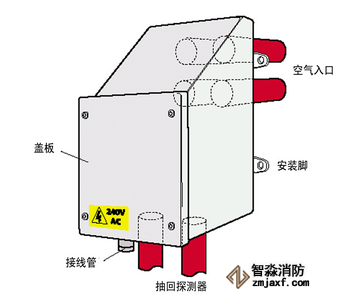 § 空氣加熱器需要使用AC電源,建議對(duì)其工作狀態(tài)進(jìn)行連續(xù)監(jiān)控。為此,要求廠家配備溫度調(diào)節(jié)裝置,并安裝在氣流進(jìn)入GST空氣采樣式感煙火災(zāi)探測(cè)報(bào)警器的位置。此開關(guān)的輸出可用于故障報(bào)警。