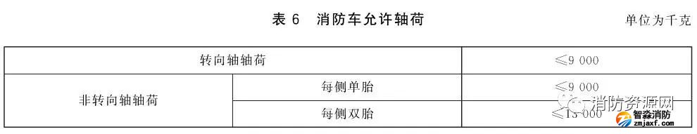 根據(jù)《消防車第1部分:通用技術(shù)條件》(GB7956.1-2014)5.1.5.1要求,消防車軸荷應(yīng)符合表6的規(guī)定: