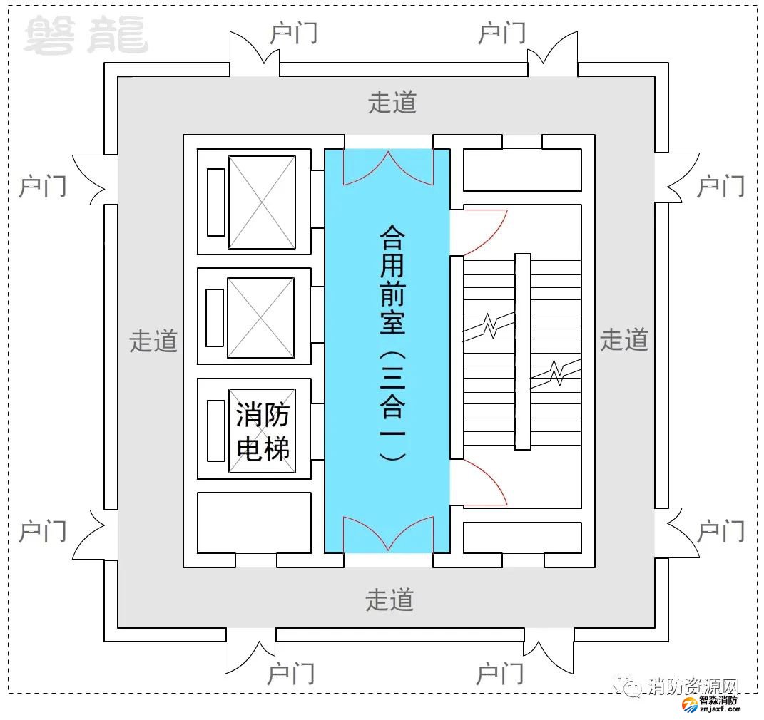 三、公共建筑人員較為繁雜,穿套前室會直接影響消防電梯前室的封閉性能,且人員不一定熟悉現(xiàn)場環(huán)境,封閉的消防電梯前室門可能導(dǎo)致疏散盲區(qū),因此,公共建筑不應(yīng)許可穿套消防電梯前室。