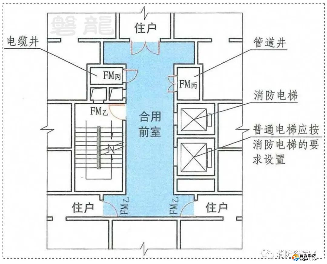 住宅建筑以家庭為單位,人員較少,且基本熟悉現(xiàn)場環(huán)境,考慮實(shí)際功能需要,允許客貨電梯設(shè)置在消防電梯前室,相關(guān)安全保障措施,參專題:客貨電梯&消防電梯-共用前室的原則及要求!