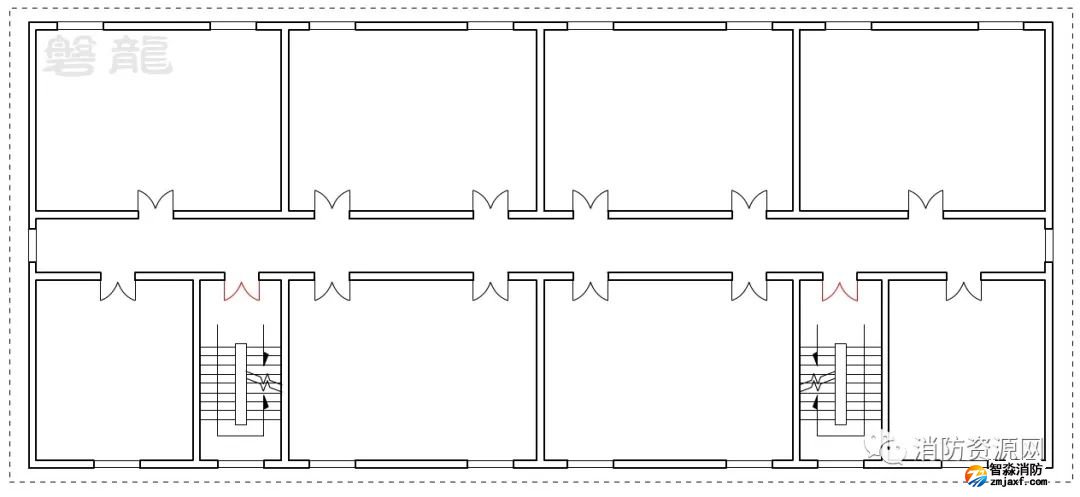 二、T形走道也稱為丁字形走道(示例3),是消防安全疏散設(shè)計(jì)中不可回避的形式。