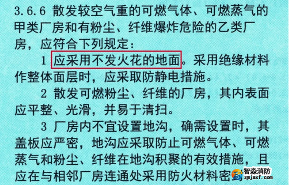 但是不發(fā)火花的地面有什么要求呢?我們來(lái)看另外一本規(guī)范的規(guī)定。