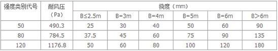 在規(guī)定荷載下其導軌與卷簾不脫落,同時其變形撓度須符合下表要求。