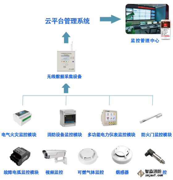 實(shí)現(xiàn)消防設(shè)施運(yùn)行及監(jiān)管的現(xiàn)代化必須構(gòu)建有效的的消防監(jiān)控物聯(lián)網(wǎng)系統(tǒng),采用消防自動(dòng)報(bào)警系統(tǒng)已有的各種感知設(shè)備、視頻采集設(shè)備等,將感知采集到的大量現(xiàn)場(chǎng)信息,借助消防物聯(lián)網(wǎng)傳輸?shù)较乐笓]中心,將過(guò)去封閉、功能單一的火災(zāi)報(bào)警系統(tǒng)改造為網(wǎng)格化、智能化的跨區(qū)域火災(zāi)報(bào)警綜合管理平臺(tái)。
