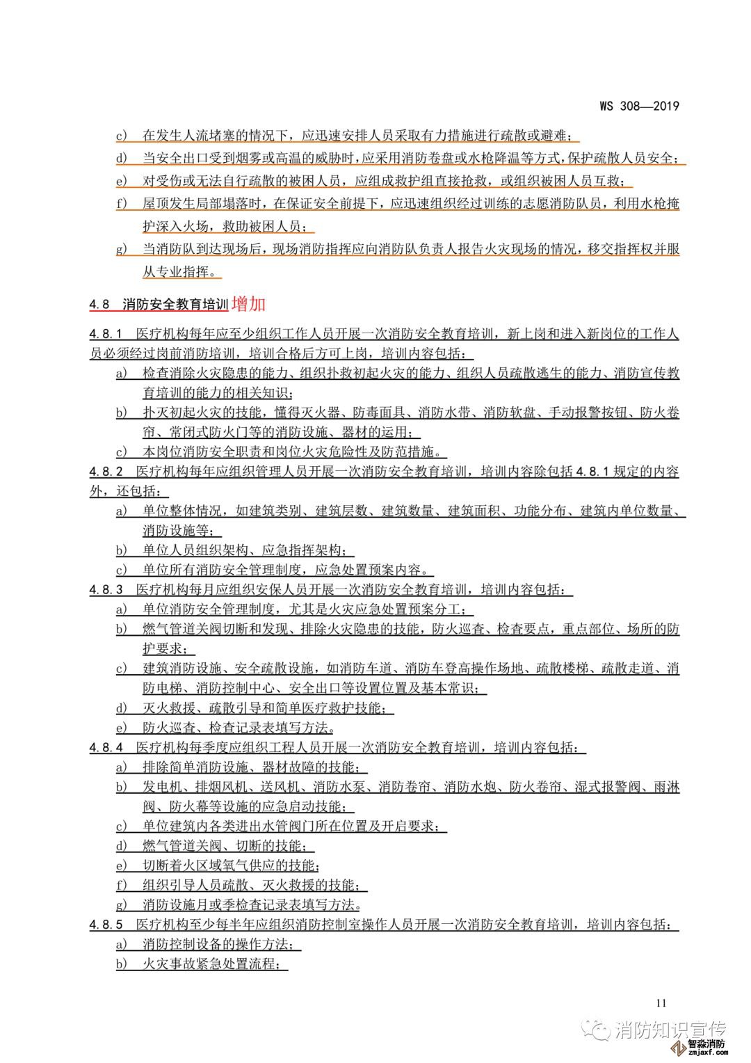 4.8.2 醫(yī)療機(jī)構(gòu)每年應(yīng)組織管理人員開展一次消防安全教育培訓(xùn),培訓(xùn)內(nèi)容除包括 4.8.1 規(guī)定的內(nèi)容外,還包括: