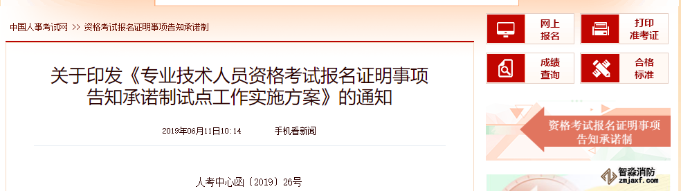 5月31日,人力資源社會保障部印發(fā)《人力資源社會保障系統(tǒng)開展證明事項告知承諾制試點工作實施方案》(以下簡稱方案)的通知,通知明確:一消、一建、一造、注安等12項專業(yè)技術(shù)人員資格考試報名時不再提供學(xué)歷、從事相關(guān)工作年限證明,實行告知承諾制。