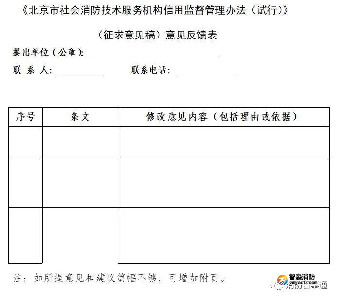 關(guān)于征求《北京市社會消防技術(shù)服務(wù)機構(gòu)信用監(jiān)督管理辦法(試行)》(征求意見稿)意見的通知