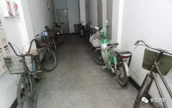 有的居民圖方便,經(jīng)常將自行車、摩托車或其他物品停放在樓梯出口或低層樓道上。萬一火災發(fā)生時,通道的阻塞便影響人員疏散,造成不必要的傷亡。
