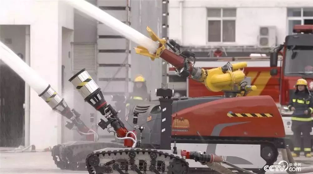 在?;坊馂?zāi)救援現(xiàn)場(chǎng),高溫、毒煙這些消防員無法靠近的著火區(qū)域,消防機(jī)器人可以在這些著火區(qū)域里工作。小型的消防機(jī)器人,向外噴水的最大流量是每秒80升,噴射水柱最遠(yuǎn)射程是70米。大型的消防機(jī)器人向外噴水的最大流量是每秒180升,噴射水柱最遠(yuǎn)射程可以達(dá)到100米。這大約相當(dāng)于2臺(tái)舉高噴射消防車的噴水量,能夠更高效地控制住火勢(shì)。