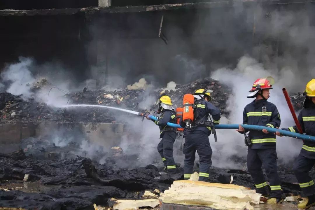 消防員用水槍對(duì)火勢(shì)進(jìn)行打擊,經(jīng)過2個(gè)多小時(shí)的撲救,大火被成功撲滅。