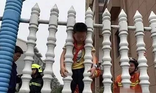 就把頭塞到兩根柱子中間……