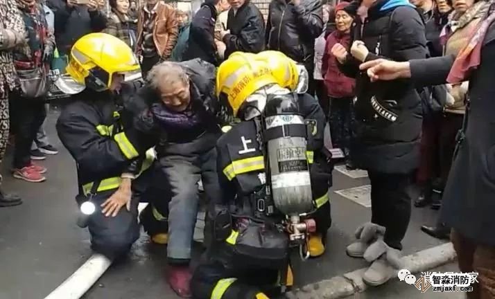 2018年1月5日中午,普陀區(qū)一民宅室內(nèi)發(fā)生火災(zāi)。消防戰(zhàn)士趕到時(shí)獲悉,在滅火救援期間,一名90高齡的老奶奶被消防員背出火場,狂奔大約有400米左右。到了弄堂口,兩名消防員以腿做凳,供老人休息。