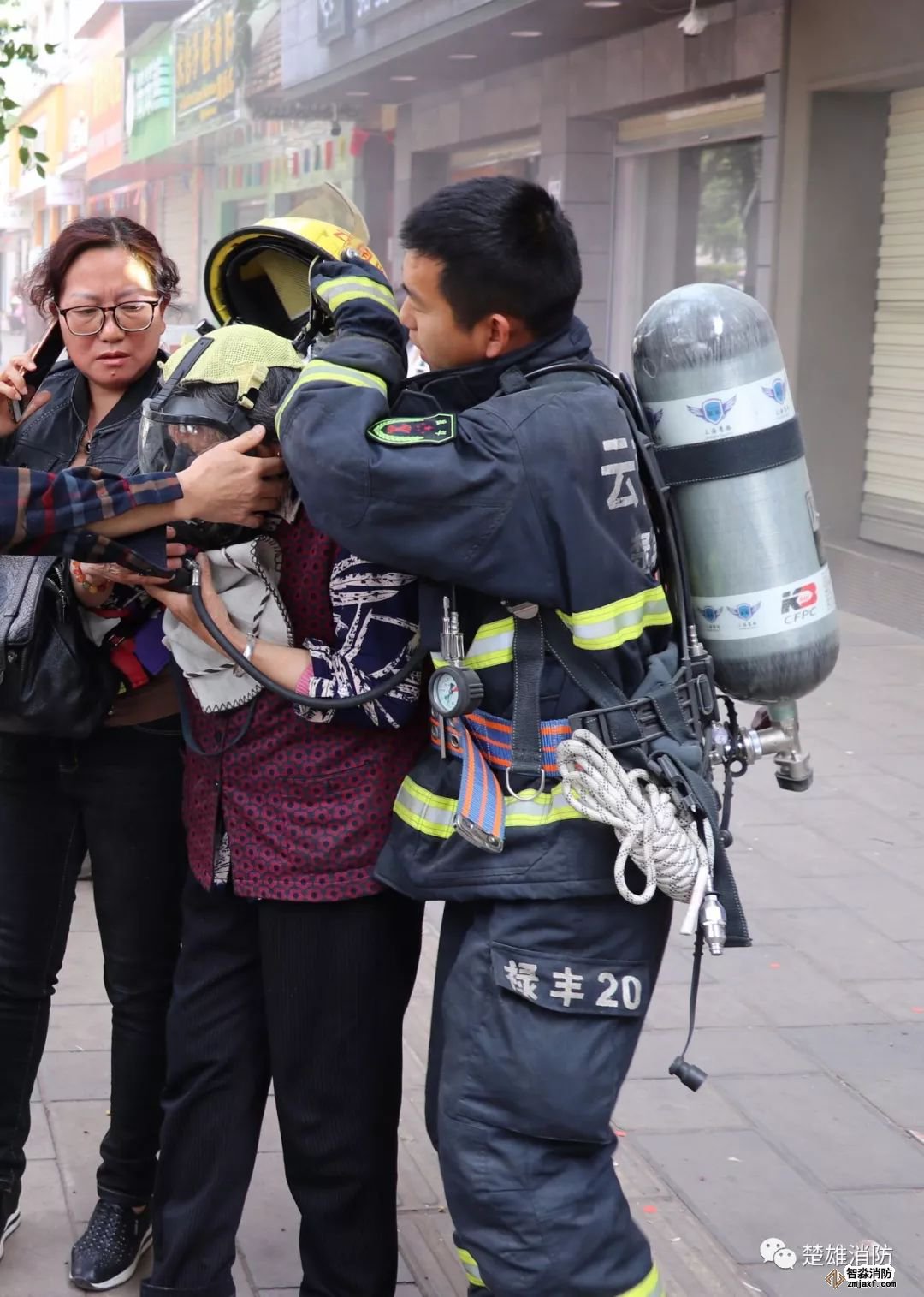 接救援過程中,由于被困群眾里有老年人,受到驚嚇后出現(xiàn)呼吸困難的癥狀,救援官兵見狀立刻取下自己的空呼面罩給老人佩戴,安撫老人情緒,保證老人意識(shí)清醒,并迅速將老人安全轉(zhuǎn)移。