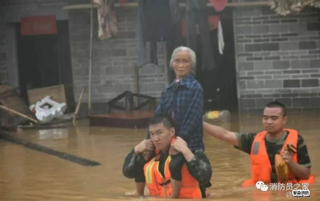 6月8日,受臺(tái)風(fēng)“艾云尼”外圍影響,江西省泰和縣境內(nèi)普降暴雨,造成水位暴漲,這位老人因左腿有疾行動(dòng)不便,沖鋒舟無法靠近,為了不使她身上被水弄濕,消防戰(zhàn)士讓其騎在肩上,徒步趟過齊胸深的洪水。