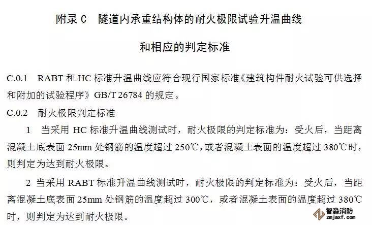 對于通行機(jī)動(dòng)車的三類隧道,火災(zāi)升溫曲線應(yīng)采用本規(guī)范附錄C第C.0.1條規(guī)定的HC標(biāo)準(zhǔn)升溫曲線,耐火極限不應(yīng)低于2.00h;