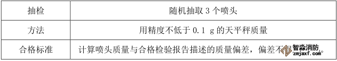 2)隨機(jī)從每批到場(chǎng)噴頭中抽取 1%,且不少于 5 只作為試驗(yàn)噴頭。當(dāng) 1 只噴頭試驗(yàn)不合格時(shí),再抽取2%,且不少于 10 只的到場(chǎng)噴頭進(jìn)行重復(fù)試驗(yàn)。