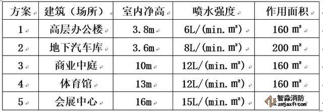(2) 民用建筑和廠房高大空間場所采用濕式系統(tǒng)設(shè)計基本參數(shù)