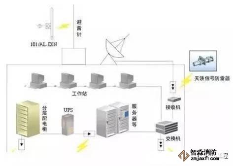 感應雷防護措施是限制、阻塞雷電脈沖沿電源線或數(shù)據(jù)、信號線進入設(shè)備,從而保護建筑物內(nèi)各類電器設(shè)備的安全。內(nèi)部防雷主要由浪涌保護器(SPD防雷器)、屏蔽系統(tǒng)、等電位連接系統(tǒng)、共用接地系統(tǒng)、合理布線系統(tǒng)等組成。安裝防雷器是分流感應雷電流和限制浪涌過電壓的有效措施,可分為電源防雷、信號防雷和天饋防雷。
