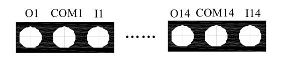 I、COM:組成反饋輸入端,接無源觸點(diǎn);為實(shí)現(xiàn)檢線,I與COM之間接4.7kΩ終端電阻。