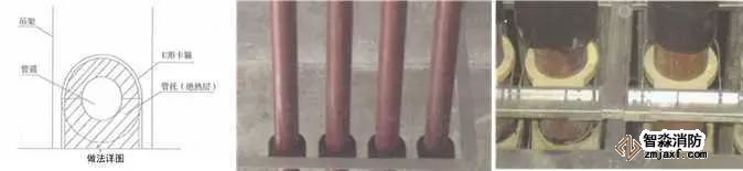 質(zhì)量控制要點(diǎn):橡塑管(板)與管托粘接、卡環(huán)處預(yù)留寬度。采用木托時(shí),防腐處理應(yīng)到位。管托厚度不得小于絕熱層厚度,接點(diǎn)緊密,表面平整,不得有冷熱橋現(xiàn)象。