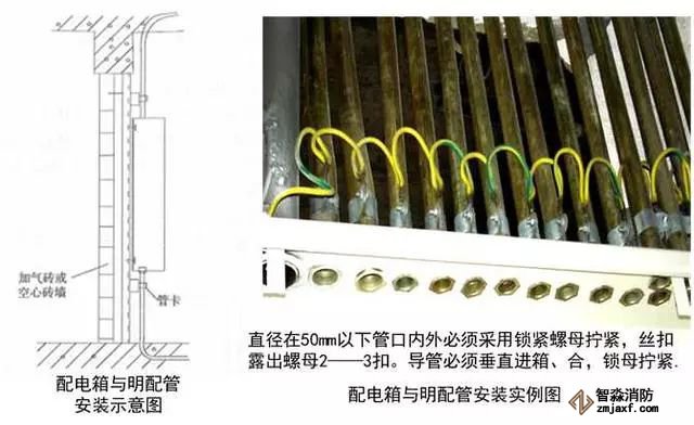質(zhì)量控制要點(diǎn):管口光滑,開(kāi)孔尺寸與線(xiàn)管一致,固定牢固,接地可靠。