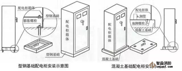 1、配電柜安裝:參照配電柜的寬厚尺寸,制作10號(hào)槽鋼基礎(chǔ),按設(shè)計(jì)位置安裝,在型鋼基礎(chǔ)的下面四角適當(dāng)?shù)奈恢勉@孔,在地面相應(yīng)位置用膨脹螺栓固定基礎(chǔ)型鋼,調(diào)整水平度;將配電柜與型鋼基礎(chǔ)對(duì)正,然后用螺栓固定,成排配電柜兩兩之間側(cè)面用螺栓連接;按系統(tǒng)圖或接線(xiàn)圖要求將電纜、電線(xiàn)與相應(yīng)的電器端子連接;將電源的接地線(xiàn)(PE線(xiàn))、各回路的接地線(xiàn)(PE線(xiàn))、金屬導(dǎo)管的接地線(xiàn)接在配電柜的接地端子上。配電室房門(mén)應(yīng)加設(shè)防水防火擋鼠板,高度不低于0.7m。