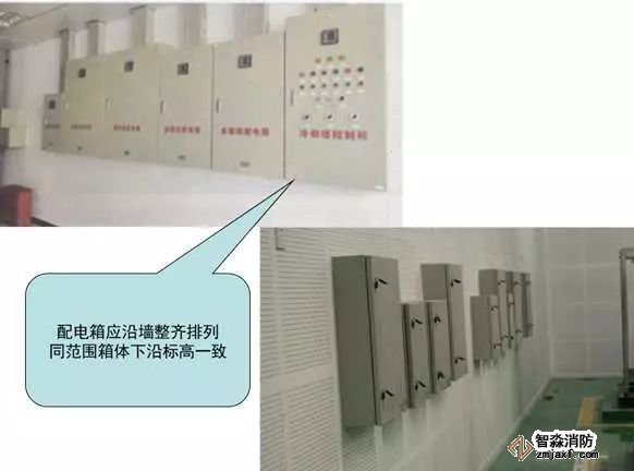 控制質(zhì)量要求:安裝牢固,配電柜正面?zhèn)让娴拇怪倍炔淮笥?mm每2m;成排配電柜前面平整度不大于2mm,頂高高差不大于2mm,相鄰配電柜連接縫隙不大于2mm。配電柜門(mén)內(nèi)應(yīng)粘貼配電系統(tǒng)圖。