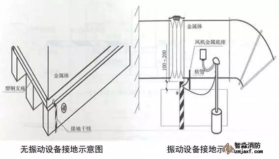 6、屋面金屬體接地:用-25x4的鍍鋅扁鋼從就近的避雷網(wǎng)引接地線(xiàn),接地扁鋼一端與避雷網(wǎng)連接,另一端在金屬體附近地面引出,應(yīng)高于設(shè)備基礎(chǔ)100~200mm。無(wú)振動(dòng)設(shè)備在金屬體上直接焊接,有震動(dòng)設(shè)備和非碳鋼金屬體應(yīng)用編織軟銅線(xiàn)兩端壓端子跨接,編織軟銅線(xiàn)外套黃綠雙色熱縮套且熱縮。伸出地面的接地母線(xiàn)應(yīng)刷黃綠相間油漆。體積較大的金屬體應(yīng)做不小于2處的接地,高度高于避雷網(wǎng)時(shí),應(yīng)加避雷針保護(hù)。接地母線(xiàn)附近應(yīng)做接地標(biāo)識(shí)。
