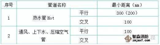 4.暗配電線管路與其它管道最小距離,如下表所示: