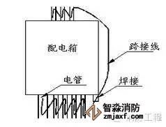 4.鋼管絲扣連接時(shí)在管接頭的兩端裝設(shè)專用接地跨接線,如圖。