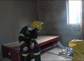 在A、B商鋪的夾層分別放置一裝有倉鼠的鐵籠。安排一名戰(zhàn)斗員著戰(zhàn)斗服戴空氣呼吸器在B商鋪夾層觀察高溫煙氣蔓延情況,并利用床單或窗簾等物品示范結(jié)繩逃生。