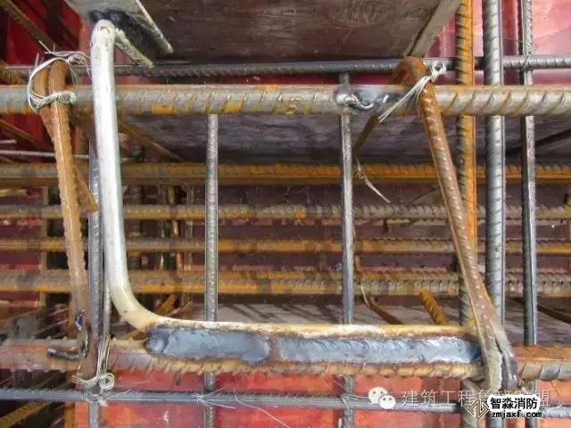 淘汰傳統(tǒng)的預(yù)留法如木盒、鐵皮盒、塑料套管,避免跑模、變形等弊端,采用可提式鋼管盒預(yù)留法,材料利用廢舊鋼管,制作時(shí),套管高度為250mm,套管管徑比圖紙?jiān)O(shè)計(jì)的管徑大兩個(gè)等級(jí),在離預(yù)留盒上口80mm處焊接一個(gè)Φ6圓鋼煨成的提手,以備混凝土達(dá)到一定強(qiáng)度后便于拔出,同時(shí)在預(yù)留盒的底口用鋼板封堵好。 蘇州智淼消防工程安裝公司