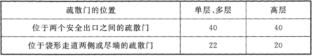 表3 直通疏散走道的房間疏散門至最近安全出口的最大直線距離(m)